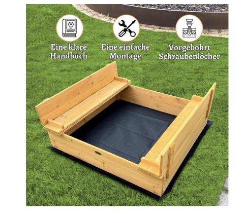 Rijoka Wooden sandpit with 2 benches with groundsheet and folding lid, 98 x 98 x 22 cm : Amazon.com.be: Toys
