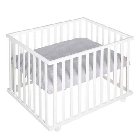ROBA Parc Bébé Réglable 75x100 cm + Tapis de Parc "roba Style" Gris + 4 Roues - Bois Blanc blanc - Le parc rectangulaire "roba Style" offre une surface de jeu stable et supporte un poids allant jusqu'à 15 kg. Il est livré avec un tapis de parc rembourré et do