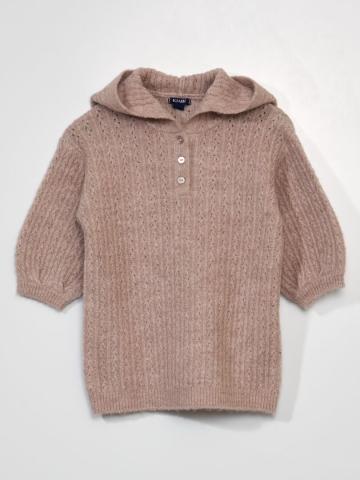 Robe en maille à la fois stylée, confortable et toute douce.- Robe pull à capuche - En maille tricot- Col boutonnée au devant - Manches longues - Finitions bords-côtes