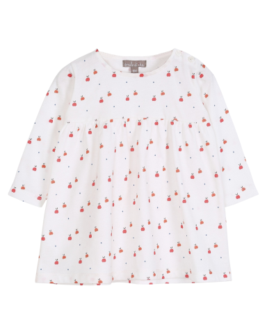 Robe en jersey doudouImprimé exclusif "pommes" en all overOuverture sur l'épaule avec bouton en nacre naturelleCol rond