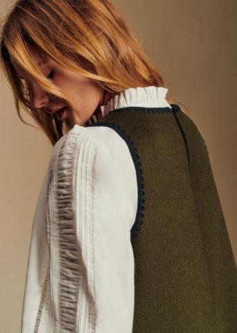 Illuminez vos looks avec cette robe courte en laine à la coupe trapèze. Ses finitions brodées sur le col, les emmanchures et l'ourlet apportent une élégance naturelle pour toutes vos occasions.