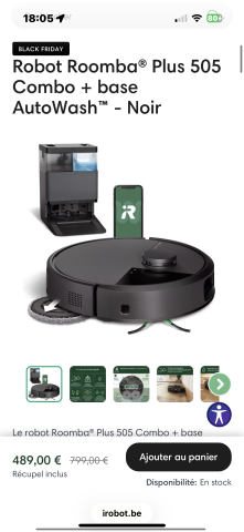 Robot Roomba® Plus 505 Combo + base AutoWash⢠- Noir