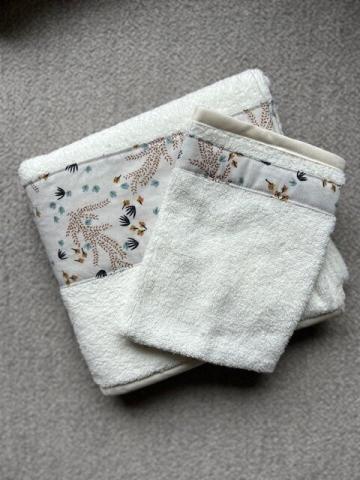 Ensemble essui de bain (médium) et gant de toilette en éponge bambou.