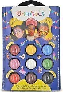GRIM’TOUT Palette de Maquillage Carnaval - 9 Couleurs x 3ml - Kit Complet avec Pinceau, Éponge et Livret - Idéal Enfants et Adultes - Maquillage Visage et Corps - Hypoallergénique pour la Peau : Amazon.com.be: Jouets