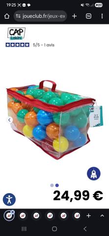 Ce produit est extrait d'une liste de cadeaux (Anniversaire, Noël, ...) déposée sur Kadolog. Kadolog permet de créer des listes de cadeaux (Anniversaire, Noël, ...) en toute liberté. Il est possible d'ajouter toutes vos envies cadeaux et de recevoir les dons directement sur votre compte. Avec les dons reçus, vous êtes alors libre d'aller acheter vos produits (comme ce 'Sac 100 balles 7 cm | jeux exterieurs et sports | jouéclub ') où et quand vous le souhaitez.