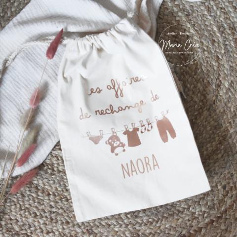 Un joli petit pochon en coton pour la tenue de rechange de votre enfant, pour mettre dans le sac de change ou pour l'entrée à l'école ou la crèche. Idéal aussi pour mettre la premier tenue de naissance et l'amener à la maternité le jour J