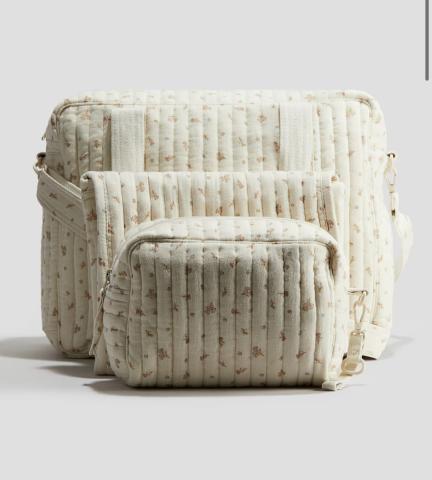 Sac de change, trousse de toilette et tapis de change.