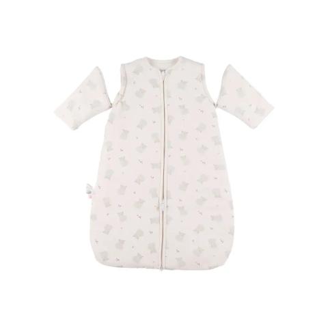 Met deze slaapzak met afneembare mouwen en ritsen aan de benen Fluffy & Orso van Noukie's valt je baby lekker warm en comfortabel in slaap.