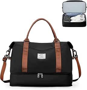 Sac de Voyage pour Femme 40x30x20 Ryanair Sac de Bagage à Main Léger, Sac de Sport de Gym avec Compartiment à Chaussures, Imperméable Sac de Week-End Sac d'Hôpital avec Sac Humide,K9-noir-marron : Amazon.com.be: Mode