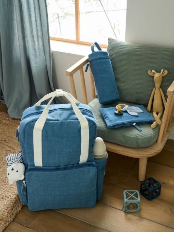 Format adapté et finitions stylées avec tissu tendance et détails contrastés pour un look qui conviendra aussi bien aux mamans qu'aux papas. Fonctionnel, ce sac à dos à langer et ses accessoires assortis sont parfaits pour les petites sorties ou pour la journée.