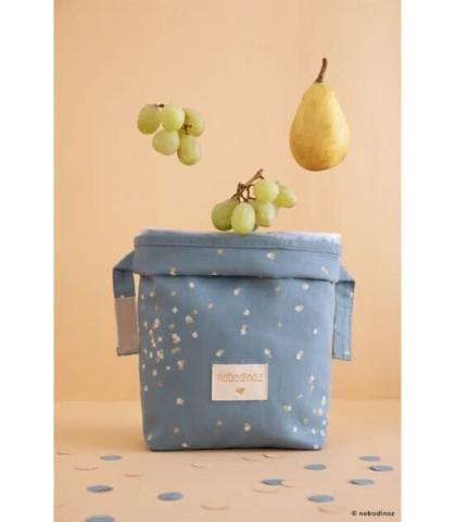 Sac à goûter Nobodinoz Gold Confetti Magic Green : coton bio, léger, isolant, idéal pour l’école ou les balades zéro déchet.