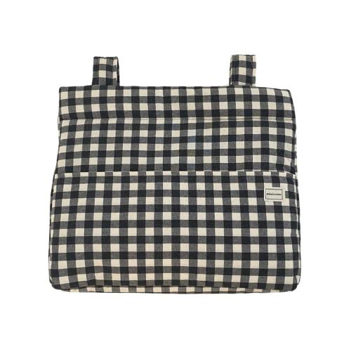 Notre sac Icon pour la poussette est très léger. Il est matelassé, ce qui protège les produits à lâintérieur. Son intérieur est imperméable, ainsi, si un liquide se renverse, il est absorbé sans traverser. Il sâattache à la poussette grâce à deux rubans qui se ferment avec un bouton-pression. Il possède également une b