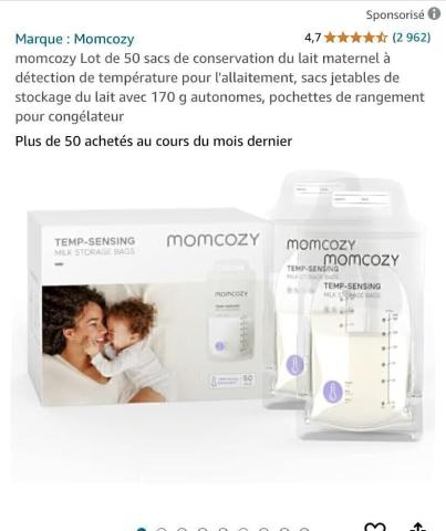 momcozy Lot de 50 sacs de conservation du lait maternel à détection de température pour l'allaitement, sacs jetables de stockage du lait avec 170 g autonomes, pochettes de rangement pour congélateur