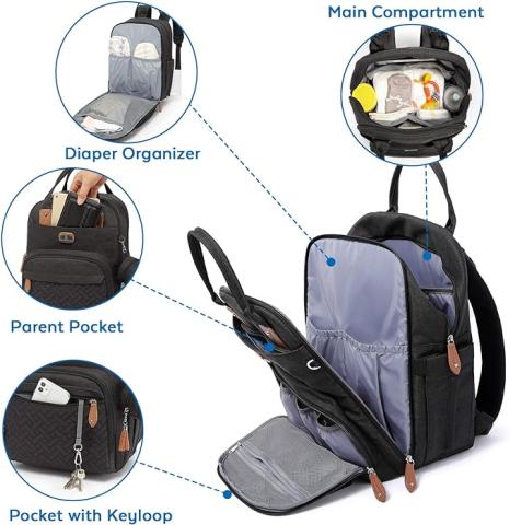 Sac à dos à langer de grande taille ( 42 x 20 x 30 cm) avec :