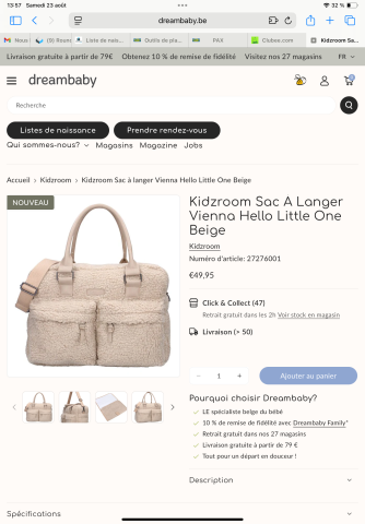en toute liberté. Il est possible d'ajouter toutes vos envies cadeaux et de recevoir les dons directement sur votre compte. Avec les dons reçus, vous êtes alors libre d'aller acheter vos produits (comme ce 'Sac à langer