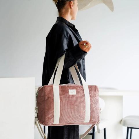 Sac à  langer bébé Noah en velours côtelé sauge : style, praticité & durabilité. Oeko-Tex©, entretien facile et nombreux rangements. Découvrez-le ! 🌿