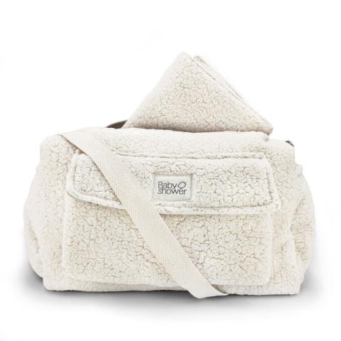 Organisateur de poussette de grande taille avec des crochets pour le guidon. Avec des poches intérieures. Exterior 100% polaire, intérieur coton 100% Bio.