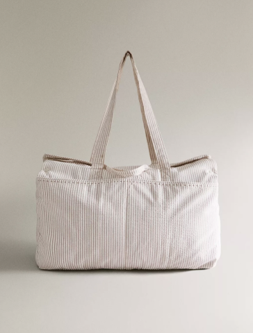 Sac à langer en coton à imprimé rayures à l’extérieur et carreaux à l’intérieur.Il est doté de deux types d’anses (deux courtes et deux longues) et de compartiments à l’intérieur comme à l’extérieur.Se ferme à l’aide d’une fermeture Éclair. - NOUVEAUTÉS - BÉBÉ | Zara Home France