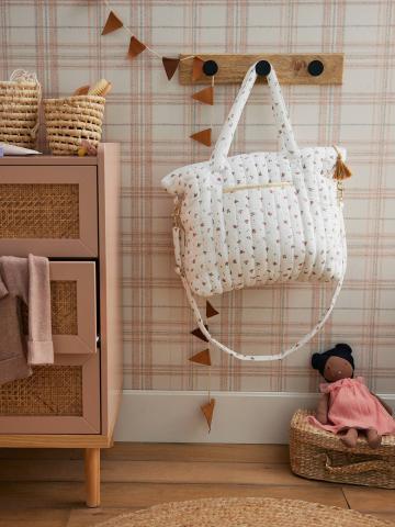 Adorable avec sa matière lange intemporelle, ce sac à langer vous permettra de vous déplacer avec votre bébé en ayant tout le nécessaire à portée de main ! Il possède plusieurs poches très pratiques et vous pouvez le porter à la main ou en bandoulière selon vos e