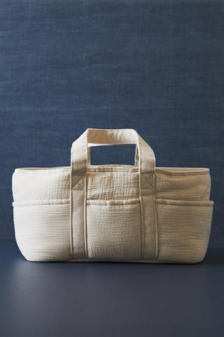 Sac à langer légèrement matelassé en douce mousseline de coton. Modèle doté de plusieurs compartiments pratiques de différentes tailles qui facilitent l'organisation au moment du change.