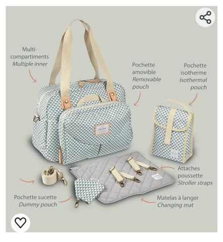 en toute liberté. Il est possible d'ajouter toutes vos envies cadeaux et de recevoir les dons directement sur votre compte. Avec les dons reçus, vous êtes alors libre d'aller acheter vos produits (comme ce 'Sac à langer "Genève 2" vert sauge