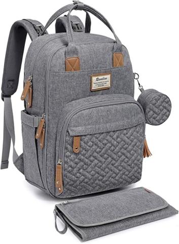 On a beaucoup cherché et on a trouvé: un sac multipoches, qui s'accroche à la poussette mais aussi sur le dos et qui convient aussi au papa !
