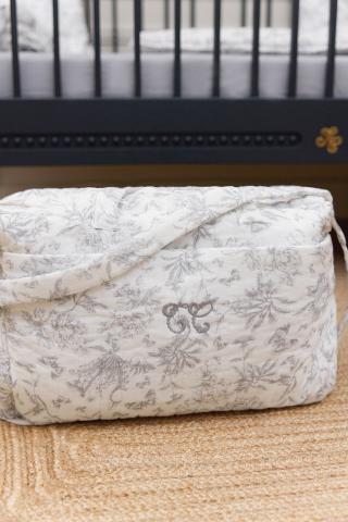Découvrez notre Sac à langer - Imprimé inspiration toile de jouy gris fille. Emballage cadeau offert ✓ Livraison gratuite en boutique et offerte dès 200€ d'achats.