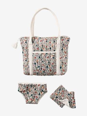 Ce joli sac à langer contient les accessoires nécessaires au change de sa poupée ! Une couche et 2 carrés en coton, pour s'amuser à pouponner comme les grands