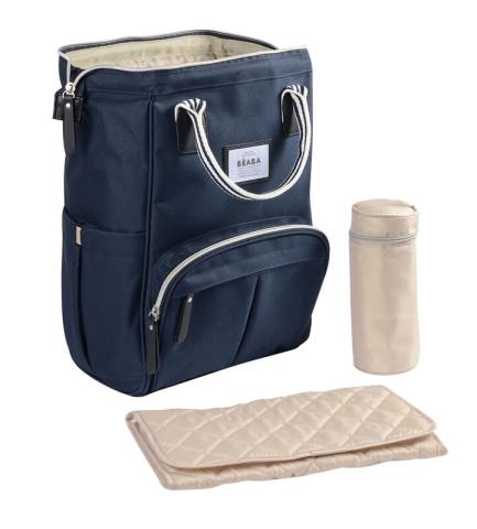 Sac à dos à langer bleu marine Wellington Béaba, large ouverture, nombreuses poches de rangement et bretelles matelassées confortables