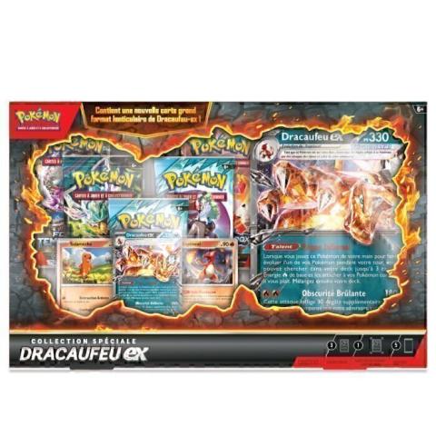 Pokémon – Coffret Collection Spéciale Dracaufeu-Ex – En français, un coffret explosif avec cartes exclusives et boosters.