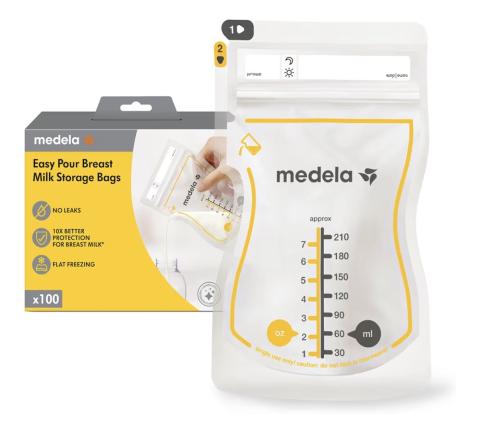 Medela Lot de 100 sacs de rangement pour lait maternel Easy Verser - 210 ml - Jetables et étanches - Avec protection du lait maternel - Essentiels pour l'allaitement