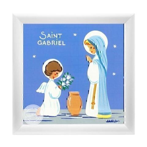 Découvrez ces tableaux faits main et encadrés qui illustrent la vie du saint patron. Tradition catholique à offrir à la naissance, le baptême, la communion, l'anniversaire, le mariage. Dessin naif. Fabriqué en France. Protège accompagne l'enfant