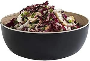 APS "Frida, bol rond en mélamine presque incassable, bol en plastique robuste, Ø 21,5 cm x H : 7,5 cm, saladier, bol à céréales, intérieur aspect bois, extérieur noir, va au lave-vaisselle.