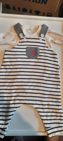 Ensemble salopette et body petit bateau.