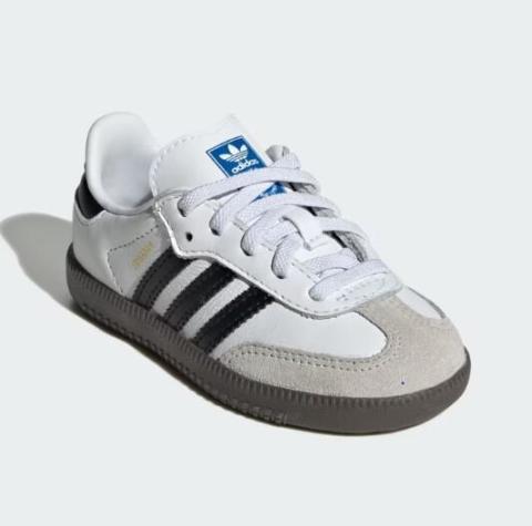 If you time travelled back to the 1960s, you'd find pro soccer players wearing adidas Sambas just like these infants' shoes. Well, almost just like them. Sized down to fit little feet, they feature a soft sockliner that feels comfortable through all-day play. A leather upper, gum rubber sole and 3-Stripes stay classic.