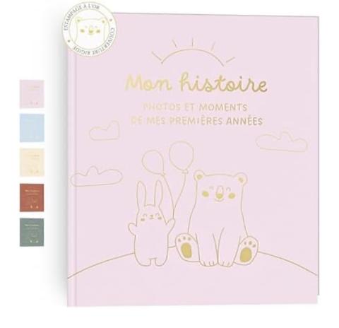 Livre de Naissance pour Coller des Photos et Écrire avec plus de 50 Pages et Autocollants, Album Photo Bebe de Première Année jusqu'à ses 5.