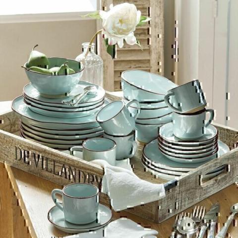 Service 30 pièces Biarré turquoise - Un magnifique et grand service de trente pièces au charme rétro. Les irrégularités à la surface de la vaisselle sont volontaires, ce qui lui confère une impression