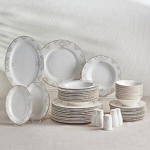 Karaca Siena Service de table 56 pièces pour 12 personnes, en porcelaine, design sophistiqué, porcelaine de qualité, durable, résistant au congélateur, facile à nettoyer, design rond