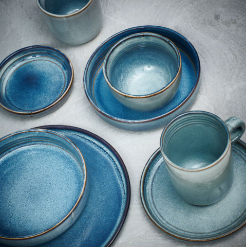 Un magnifique service en céramique dans des teintes bleu clair. Des formes classiques sont combinées avec des couleurs innovantes, et la finition en émail réactif crée un motif de couleur unique, rendant chaque pièce unique.