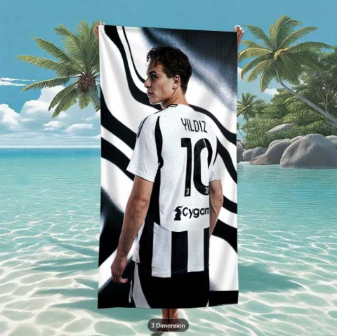 Serviette de Plage YILDIZ 10 - Design Séchage Rapide, Inspirée Officiellement, Rayures Noir et Blanc, Idéale pour les Fans, Voyages, Piscine, Cadeaux Sportifs