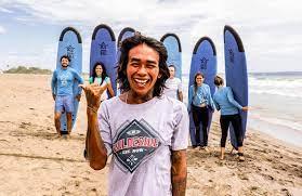 Session de surf pour occuper Antoine pendant que MC fait du yoga