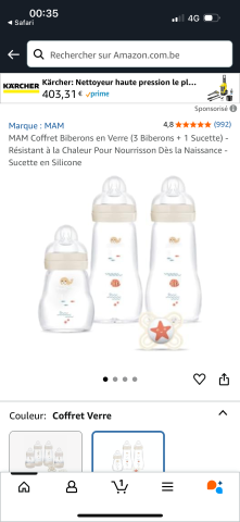 en toute liberté. Il est possible d'ajouter toutes vos envies cadeaux et de recevoir les dons directement sur votre compte. Avec les dons reçus, vous êtes alors libre d'aller acheter vos produits (comme ce 'Set Biberon en verre MAM
