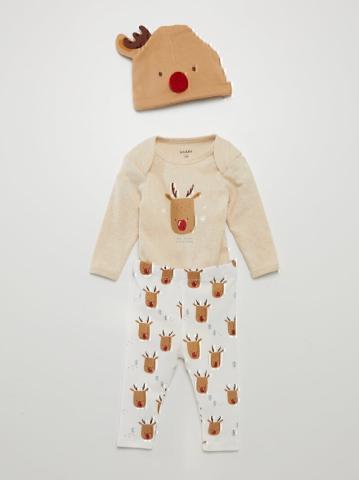 Habillez votre petit bout de chou pour les fêtes avec notre ensemble 3 pièces pour bébé : body, legging et bonnet de Noël, un look adorable et confortable à croquer !"- Body en coton - Col rond - Manches longues - Ouverture à pressions entrejambe - Legging assorti - Imprimé all-over - Bonnet assorti