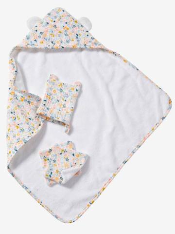 A l'heure de la toilette, les enfants seront bien équipés pour sortir leur bébé de l'eau ! Une cape de bain pour les envelopper en douceur, un gant pour les débarbouiller et 2 lingettes pour appliquer leur soin, un