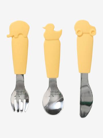Les enfants vont prendre plaisir à manger vos bons petits plats grâce à des couverts colorés et faciles à manier. Un couteau, une fourchette et une cuillère en inox avec manche en silicone décoré de petits animaux q