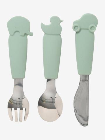Les enfants vont prendre plaisir à manger vos bons petits plats grâce à des couverts colorés et faciles à manier. Un couteau, une fourchette et une cuillère en inox avec manche en silicone décoré de petits animaux q