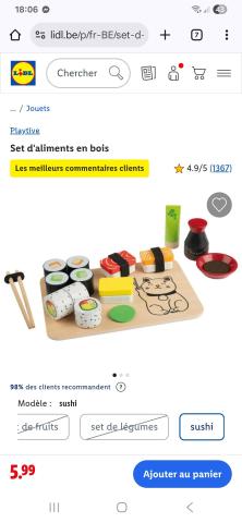 Ce produit est extrait d'une liste de cadeaux (Anniversaire, Noël, ...) déposée sur Kadolog. Kadolog permet de créer des listes de cadeaux (Anniversaire, Noël, ...) en toute liberté. Il est possible d'ajouter toutes vos envies cadeaux et de recevoir les dons directement sur votre compte. Avec les dons reçus, vous êtes alors libre d'aller acheter vos produits (comme ce 'Set d'aliments en bois ') où et quand vous le souhaitez.