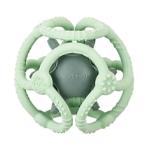 Ces deux balles en silicone vert menthe invitent bébé à les saisir, les tourner et les mordiller. Les grands trous et la matière souple facilitent la prise en main pour des heures de jeu et de découvertes.