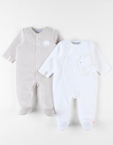 Plongez dans le confort avec notre ensemble de 2 dors-bien en velours. Un beige tendre avec un éléphanteau brodé et un blanc délicat orné d'un charmant imprimé de maman et bébé éléphant.