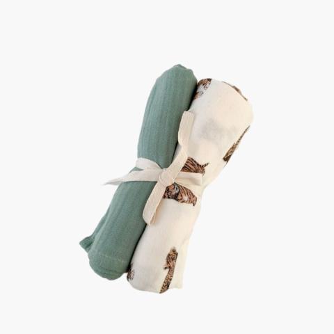 Ce Tétra pour bébé aux motifs Tigre est accompagné d’un tétra de rechange de couleur unie. Il peut être utilisé au quotidien, comme bavoir de rechange lorsque bébé à tous sali, comme protection pour maman lorsque bébé digère, ou pour enrouler votre bébé pour ne pas le perturber lors de l'allaitement. 70 X 70 cm. Milina
